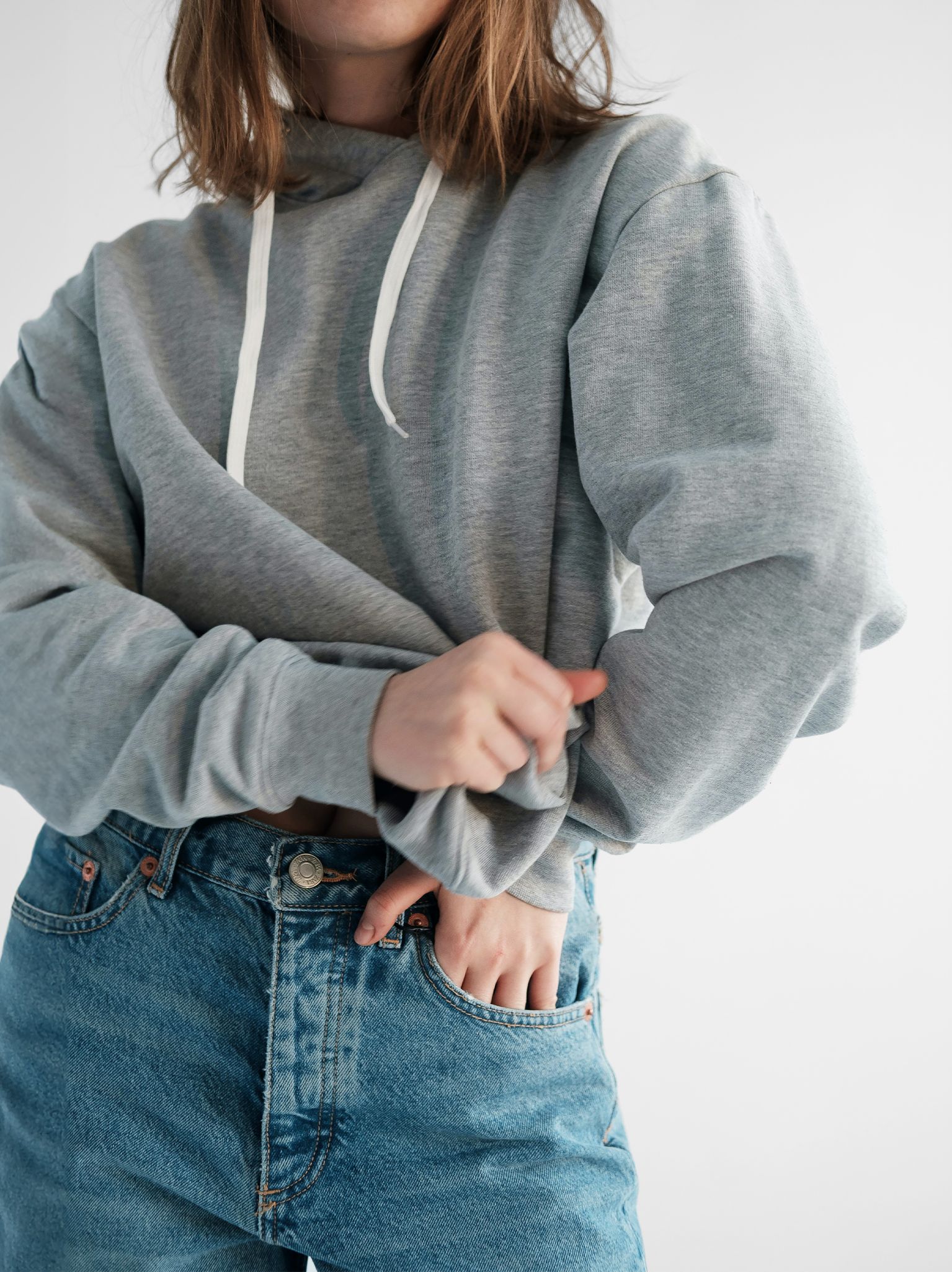 - Oversized, relaxed fit with hood and long sleeves